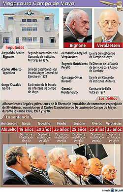 Riveros, Verplaestsen y García ya habían sido condenados el año pasado a penas de prisión perpetua, 25 años y 18 respectivamente, en el primer juicio por crímenes en Campo de Mayo en el que se ventiló el asesinato del adolescente comunista Floreal Avellaneda, y ya están detenidos en el penal de Marcos Paz..