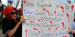 Hubo protestas, las cuales fueron soslayadas por las agencias internacionales, solo se dice que «grupos de izquierda convocaron a protestar contra la llegada de Uribe», pero el vocero de la Policía Nacional, Leonel Sauceda, dijo que un contingente especial formado por patrullas, elementos cobras y militares fue asignado para protegera y acompañar a