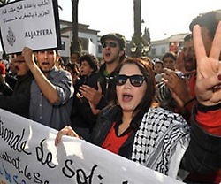 Miles de personas se manifestaron el domingo en muchas ciudades de Marruecos para reclamar reformas políticas y una limitación de poderes del rey, respondiendo a un llamado lanzado inicialmente por jóvenes en Facebook y seguido por diferentes ONG y organizaciones.