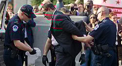 La concentración incluía a manifestantes, turistas que pasaban y personal del Capitolio que salía de su trabajo.