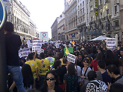 La mayor manifestación ha sido en Madrid donde los ciudadanos han abarrotado la capital bajo el lema «mercancías en manos de políticos y banqueros», que ha abierto la marcha a las 18:00 horas en la plaza Cibeles con destino a la Puerta del Sol.