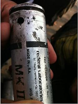 Uno de los documentos de indentidad parece de Indiana. Otras informaciones indican que los tres son de EEUU. También se mostró un proyectil de gas lacrimógeno lanzado por el Ejército en El Cairo. Tiene el sello del origen de fabricación: USA