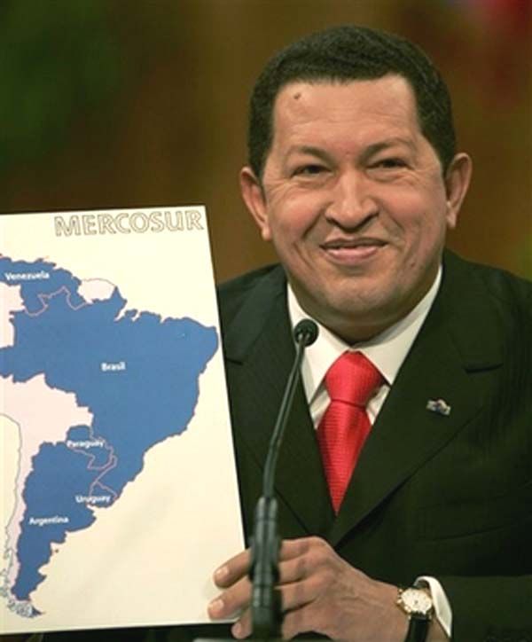 “Planteamos la revisión del criterio jurídico y lograr en la reunión de Montevideo el 20 (de diciembre) el ingreso definitivo de Venezuela al Mercosur, y (en) eso Brasil, Argentina y nosotros estamos de acuerdo”, comentó Mujica, que viajó a Argentina para asistir a la asunción de Cristina Fernández.