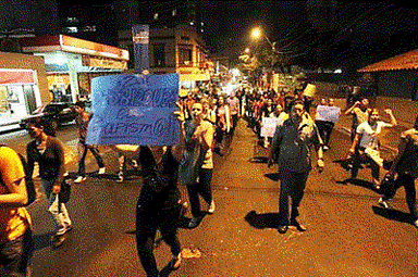 Esta fue la segunda protesta pública ocurrida en esta capital en las últimas 24 horas, pues numerosos jóvenes también interrumpieron anoche la inauguración de un nuevo local del Partido Colorado.
