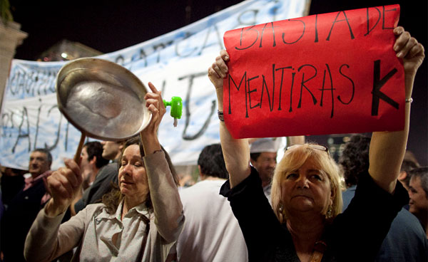 Llama la atención que la libertad de expresión aparezca como uno de los elementos de protesta en un país donde existe una campaña intensa, llevada adelante por medios de comunicación, para descalificar al Gobierno nacional que se ha incrementado en la medida en que se acerca el 7 de diciembre, cuando debe aplicarse la nueva normativa que hace desaparecer a los monopolios de comunicación al obligarlos a vender parte de los medios que poseen.