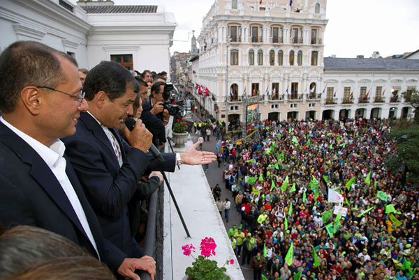 Fiel a su discurso de los últimos años, Correa señaló que «lo importante es que aquí no mande el poder mediático, ni la bancocracia, ni los viejos partidos, sino el poder democrático. Con esta revolución mandarán los ecuatorianos».