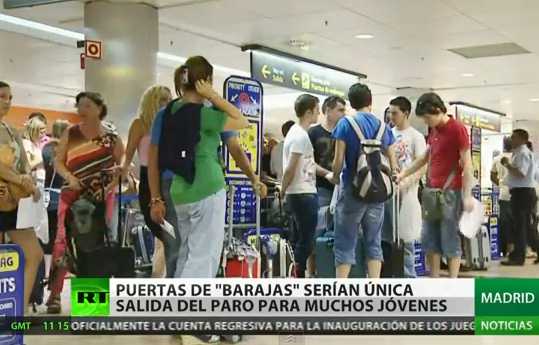 Aeropuerto de Barajas en Madrid. Terminal de salidas. Esas son las puertas del nuevo mercado laboral para muchos jóvenes de España, un país en el que el paro supera ya el 55% entre los menores de 25 años. Un récord histórico, desde que existen estadísticas.