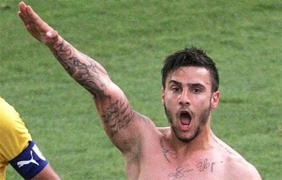 Atenas, marzo 18 de 2013.- El jugador del AEK de Atenas Giorgios Katidis (Tesalónica, 12 de febrero de 1993) fue sancionado con la exclusión de por vida de todas las categorías de la selección de Grecia por celebrar un triunfo con el saludo nazi. En tiempos en los que el partido de ultraderecha Amanecer Dorado tiene una amplia representación en el Parlamento del país, los directivos de la Federación Griega de Fútbol imponen un castigo ejemplar al considerar ese gesto como un insulto hacia todas las víctimas de la brutalidad nazi.