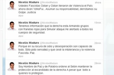 Horas antes, Capriles difundió a través de Twitter que Maduro “mandó a atacar mi residencia oficial como gobernador de (estado) Miranda en Los Teques (capital)”. Asimismo, dijo que “cualquier cosa que me pase en la Residencia Oficial en Los Teques, hago responsable a Nicolás Maduro”.