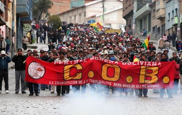 La COB, liderada por sectores mineros, inició el pasado 6 de mayo un paro general indefinido caracterizado por marchas y bloqueo de caminos, en demanda de la modificación del actual Sistema de Pensiones, para jubilarse con el 100% de sus últimos 24 salarios y en algunos casos hasta con 8.000 bolivianos.