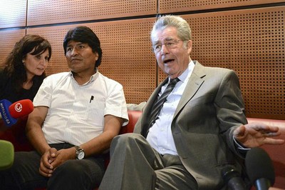 El presidente de Austria, Heinz Fischer, visitó a Morales en el Aeropuerto de Viena y fue quien anunció que España autorizó la escala técnica que necesita hacer la aeronave en Las Palmas de Gran Canaria.