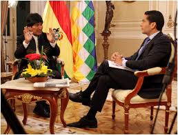 Tras un inicio tenso en el que Cala agradeció la entrevista y aclaró que no se quejó porque Morales suspendió la entrevista acordada inicialmente para el pasado viernes, porque se opuso a que se editará y recortara, el gobernante boliviano dijo que en su formación sindical junto a los movimientos sociales y particularmente al movimiento campesino originario identificaron a los enemigos internos y externos de las clases empobrecidas de su país.