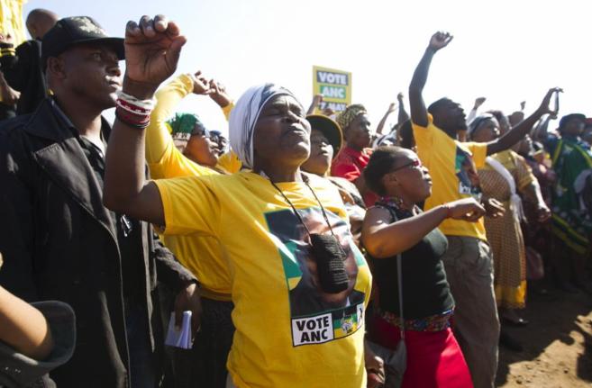 Pretoria, 9 de mayo de 2014.- El gubernamental Congreso Nacional Africano (CNA) mantiene una amplia ventaja en las elecciones generales de Sudáfrica y se asegura la mayoría absoluta con el 63% de los votos, según los datos ofrecidos por la Comisión Electoral Independiente, que hasta ahora ha escrutado un 85% de los sufragios.