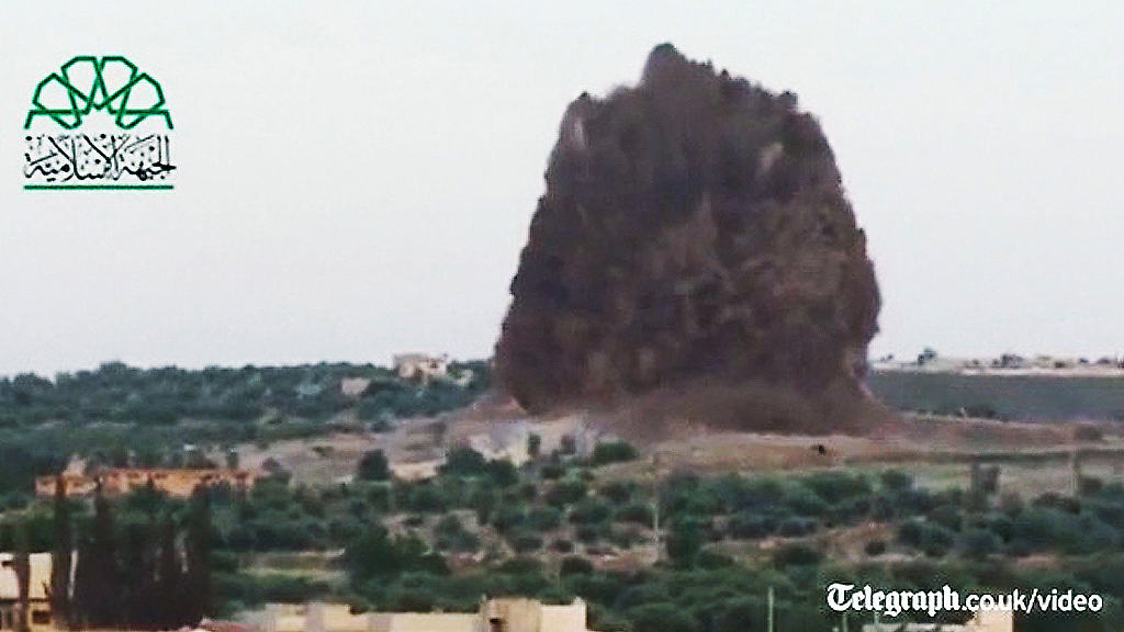 Recientemente hemos recibido el presente video que muestra el enorme estallido de una “bomba túnel” en la ciudad de Idlib, en Siria. Los rebeldes habrían colocado el explosivo en un túnel próximo a un puesto de control del Gobierno. Según fuentes del “Observatorio Sirio para los Derechos Humanos”, al menos 30 militares habrían perecido tras la inmensa explosión. Pese a estar perdiendo la guerra, los rebeldes siguen luchando y empleado nuevas armas en algunos frentes de batalla.