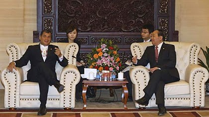 07-01-15.- La inversión de unos 5296 millones de dólares por parte de China en Ecuador fue una de las hazañas logradas por el presidente ecuatoriano, Rafael Correa, en la reunión que mantuvo con el presidente del Banco de Importaciones y Exportaciones de China (Eximbank), Li Ruogu. Conforme a las declaraciones hechas este martes por el ministro de Finanzas de Ecuador, Fausto Herrera, el mandatario ecuatoriano tiene planeado ratificar los convenios alcanzados con Li Ruogu el miércoles, durante la visita que realizará a su homólogo chino, Xi Jinping.
