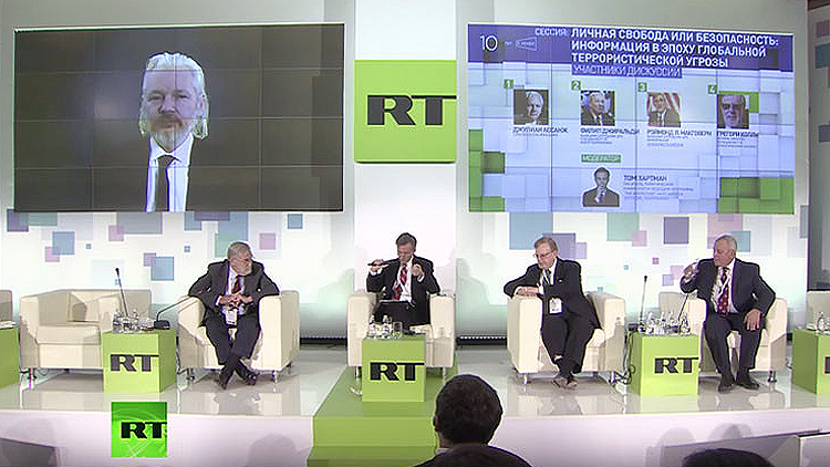 Assagne quien participó en el evento, desde su lugar de asilo en la Embajada de Ecuador en Londres, expresó: «Podemos olvidarnos del derecho de privacidad y la libertad personal, porque ya no existen»