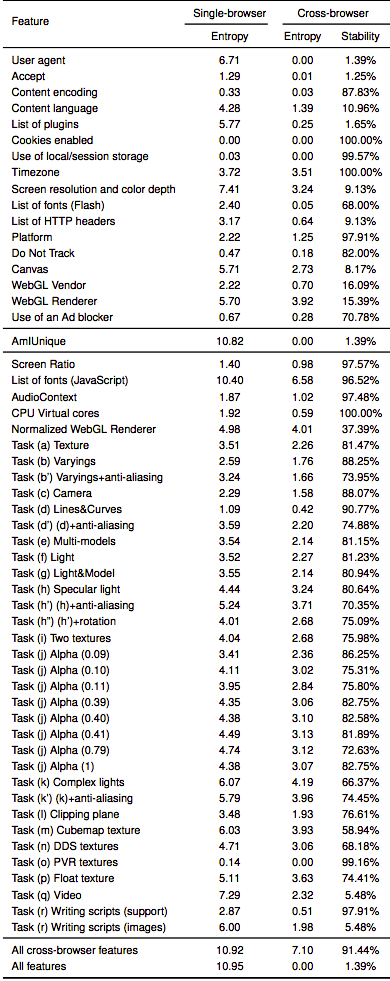 Mientras que este seguimiento es extremadamente agresivo, siempre se había limitado a un navegador. Esto significa que si usaste un servicio en Firefox y luego hiciste lo mismo en Chrome, no serías identificable específicamente debido a tu navegador. En la última técnica esbozada por los investigadores, en un documento titulado «Seguimiento de la huella digital de Navegadores (Cruzados) través de OS y niveles de características de hardware – (Cross-) Browser Fingerprinting via OS and Hardware Level Features«, los investigadores fueron capaces de identificar a los usuarios a través de múltiples navegadores. La última técnica es en realidad más precisa que los métodos de huellas dactilares disponibles hasta el momento.